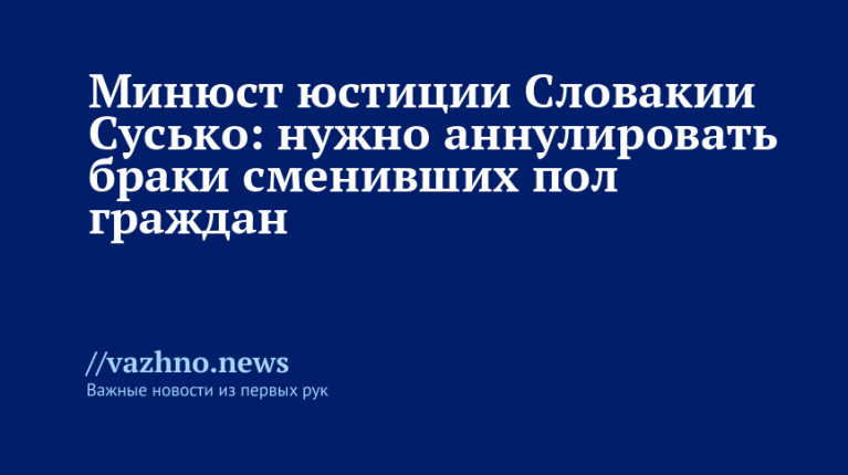 Министр юстиции Словакии Борис Сусько выступил с предложением об аннулировании браков в тех случаях, если один из супругов сменил пол. Об этом стало известно 31 октября из материалов новостного портала Aktuality.