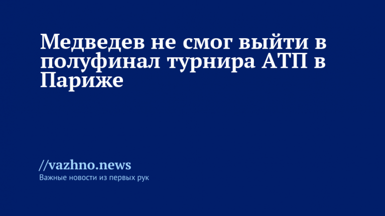 Российский теннисист Даниил Медведев не сумел пробиться в полуфинал теннисного турнира серии «Мастерс» Ассоциации теннисистов-профессионалов (ATP) в Париже. В субботний день, 31 октября, он уступил представителю Германии Александру Звереву.