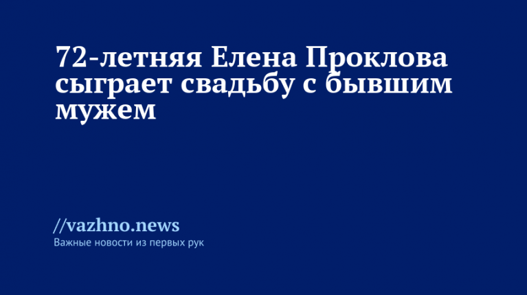 72-летняя Елена Проклова, Заслуженная артистка РСФСР, призналась 30 октября, что ее бывший супруг сделал ей предложение руки и сердца.