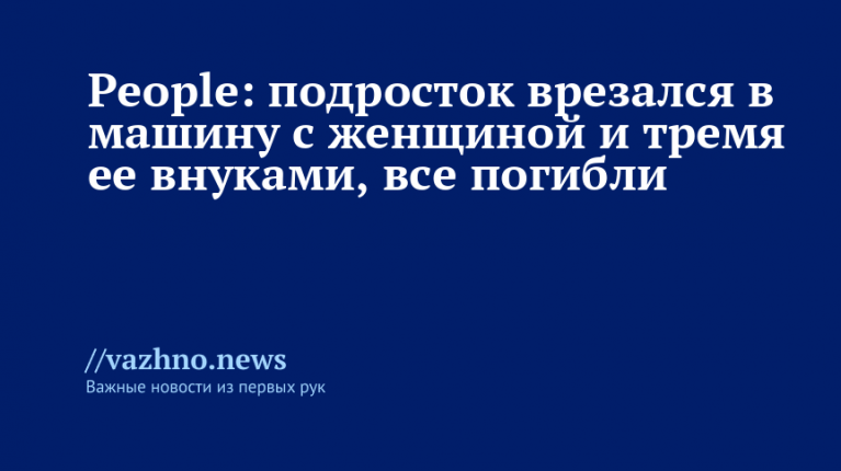 В США 15-летний подросток попал в смертельное ДТП, столкнувшись с автомобилем, в котором находилась женщина с тремя внуками, за что отец несовершеннолетнего признан виновным. Так, 30 октября сообщает журнал People.