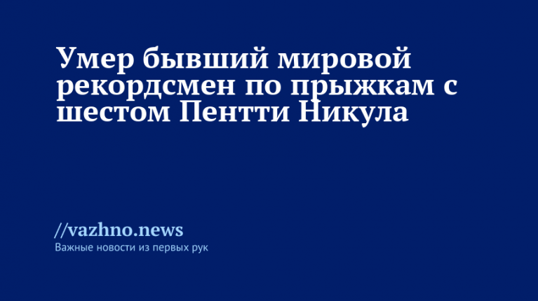 В возрасте 86 лет умер известный финский прыгун с шестом и бывший мировой рекордсмен Пентти Никула. О смерти спортсмена 31 октября сообщила газета Ilta-Sanomat, ссылаясь на его близких.