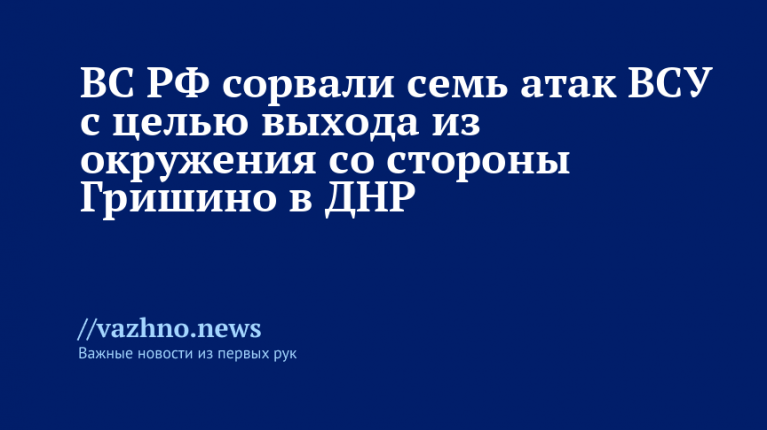 ВС РФ отразили семь атак ВСУ на выход из окружения у Гришино в ДНР