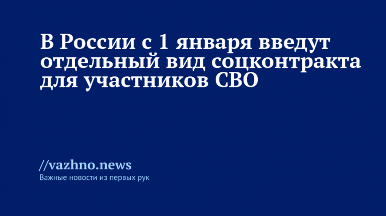 С 1 января 2026 года в России запустят новый тип социального контракта для демобилизованных участников специальной военной операции (СВО), желающих открыть собственное дело. Информация об этом появилась 1 ноября на официальном сайте Министерства труда РФ.
