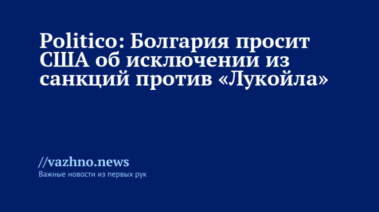 С запросом об исключении из санкций против российской нефтяной компании «Лукойл» Болгария обратилась к США. Об этом 31 октября сообщила газета Politico, ссылаясь на источники, знакомые с ситуацией.