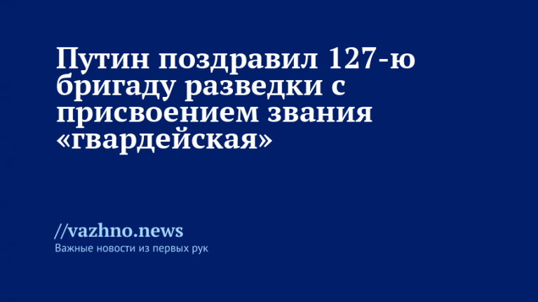 Президент России Владимир Путин направил поздравление военнослужащим 127-й бригады разведки в связи с присвоением им почетного наименования «гвардейская». Телеграмма с обращением главы государства от 1 ноября была размещена на официальном сайте Кремля.
