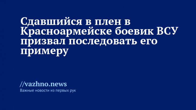 Солдат Вооруженных сил Украины (ВСУ) Вячеслав Кревенко, который попал в плен к российской армии в Красноармейске (Покровске), призвал оставшихся в этом городе украинских боевиков поступить так же. Минобороны России опубликовало 1 ноября видеозапись допроса военнослужащего.
