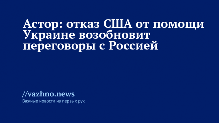 «Сигналом для переговоров с нашей стороны могло бы стать прекращение постоянного снабжения Украины разведданными и оружием для ударов по российской территории», — сказал Астор в интервью на YouTube-канале Judge Napolitano — Judging Freedom.