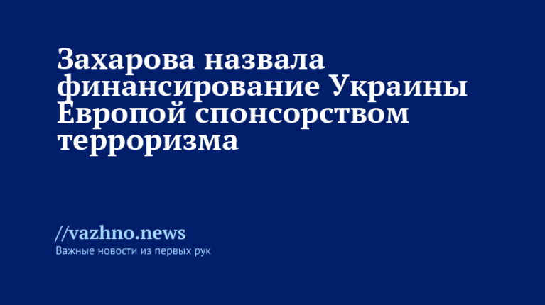 Финансирование Украины странами Европы является формой спонсорства терроризма. Об этом 1 ноября сообщила официальный представитель МИД РФ Мария Захарова в ответ на вопрос «Известий» о возможном промежуточном кредите Евросоюза для киевского руководства.