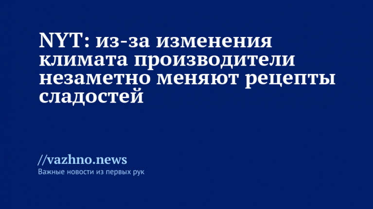 Недавнее исследование установило, что повышение температур и изменение погодных условий существенно отражаются на составе шоколадных батончиков, из-за чего компании начинают искать пути удешевления производства. Было обнаружено, что в ответ на эти факторы фирмы корректируют рецептуры. Об этом 30 октября написала газета The New York Times (NYT).