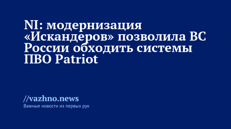 Модернизация оперативно-тактических ракетных комплексов «Искандер» обеспечила российским войскам возможность эффективно обходить системы противовоздушной обороны Украины, в том числе американские батареи Patriot. С таким сообщением 1 ноября выступил журнал The National Interest (NI).
