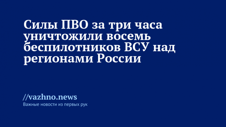 Уточняется, что пять беспилотников были сбиты над территорией Брянской области, еще три БПЛА —– над Белгородской областью. Таким образом отражена угроза, возникшая в воздушном пространстве этих регионов с применением дежурных средств ПВО.