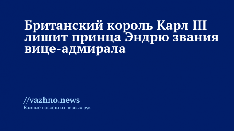 Министр обороны Великобритании Джон Хили сообщил, что принцу Эндрю будет отозвано звание вице-адмирала Королевского военно-морского флота. Об этом глава ведомства заявил 2 ноября в эфире телеканала «Би-би-си».