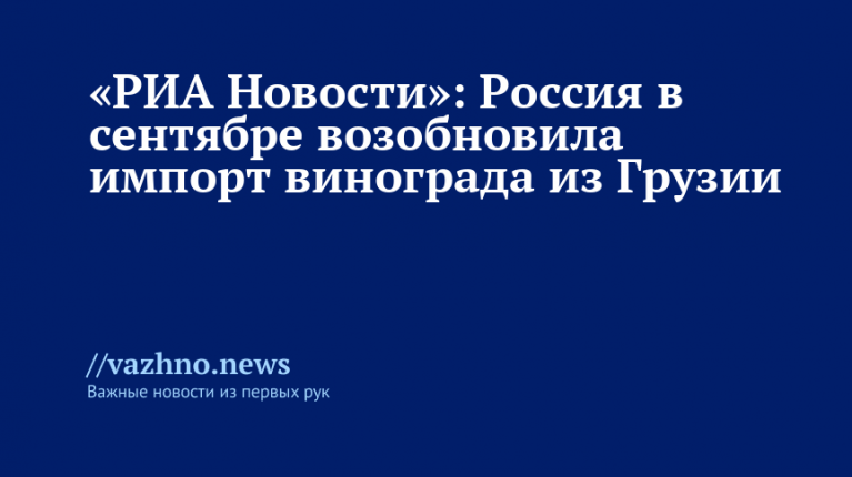 По информации, с которой ознакомилось «РИА Новости», в сентябре Россия приобрела у Грузии винограда на $688 тыс. Это стало первой поставкой с декабря прошлого года. В денежном выражении объем импорта оказался почти на 8% выше, чем в сопоставимом периоде.