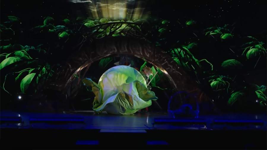 На сцене показаны кавказский, северный, алтайский и славянский богатыри, собранные одной целью — отыскать волшебную птицу Гамаюн. По славянским мифам, эта птица предвещает счастье и может предсказывать будущее.