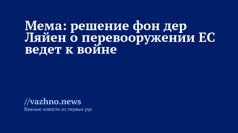 «Я не согласен с тем, что президент ЕС перевооружает Европу, это опасный путь, который ведет к войне», — написал Мема на своей странице в соцсети Х (бывш. Twitter).