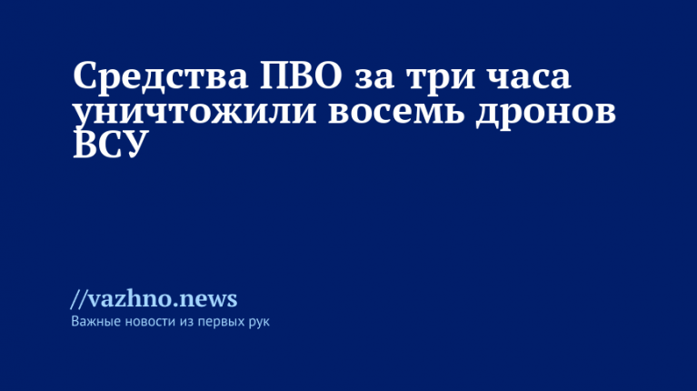 Минобороны 2 ноября сообщило, что в течение трех часов средства противовоздушной обороны уничтожили восемь беспилотных летательных аппаратов Вооруженных сил Украины (ВСУ) в небе над российскими регионами.
