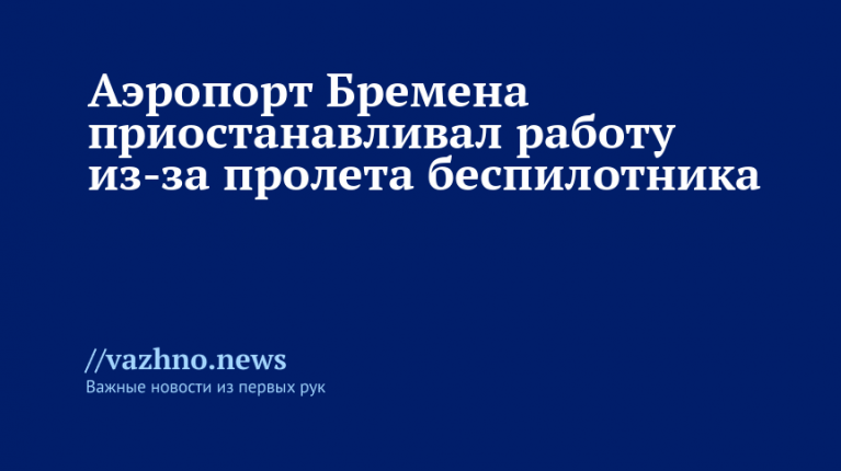 В аэропорту немецкого города Бремена временно прекратили работу после того, как в зоне полетов был замечен беспилотный летательный аппарат. Полиция сообщает, что дрон обнаружили приблизительно в 19:30 по местному времени (21:30 мск), — об этом 2 ноября пишет BR24.