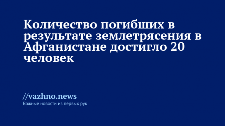 «По меньшей мере 20 человек погибли в результате землетрясения магнитудой 6,3 балла в Афганистане», — сказано в публикации.