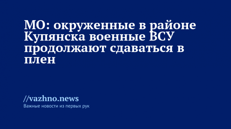 «Украинские военнослужащие продолжают сдаваться в плен подразделениям группировки войск «Запад», участвующим в операции по уничтожению окруженных формирований ВСУ в районе населенного пункта Купянск Харьковской области», — говорится в сообщении.