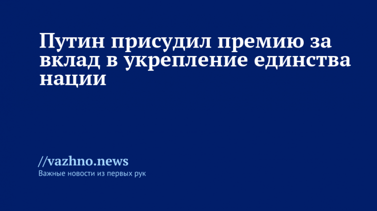 Президент России Владимир Путин, в преддверии Дня народного единства, утвердил список лауреатов ежегодной премии за вклад в укрепление народного единства российской нации. Соответствующий указ появился 3 ноября на сайте официального интернет-портала правовой информации.