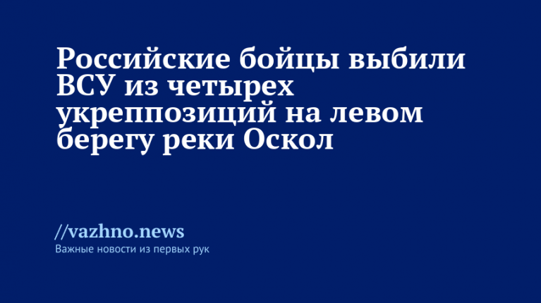 «В районе населенного пункта Купянск Харьковской области штурмовые группы 6-й армии продолжали уничтожение окруженной группировки ВСУ. В ходе городских боев противник выбит с четырех укрепленных позиций в промзоне на левом берегу реки Оскол», — говорится в сообщении.