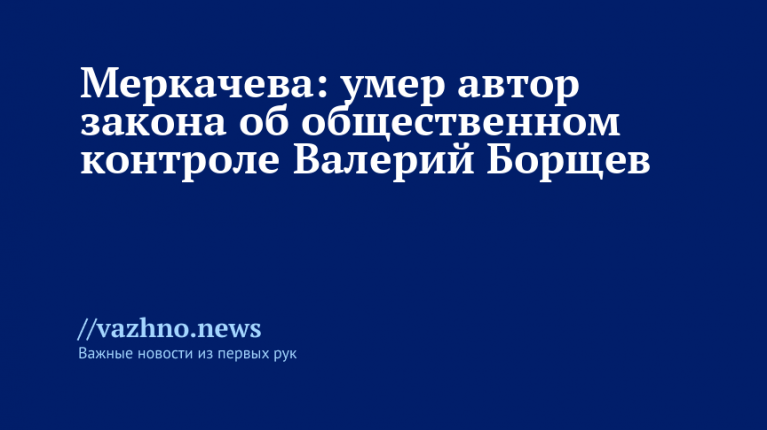 Политик Валерий Борщев, выступивший инициатором закона об общественном контроле в местах лишения свободы, скончался на 82-м году жизни. Об этом 3 ноября сообщила член Совета при президенте России по правам (СПЧ) человека Ева Меркачева.
