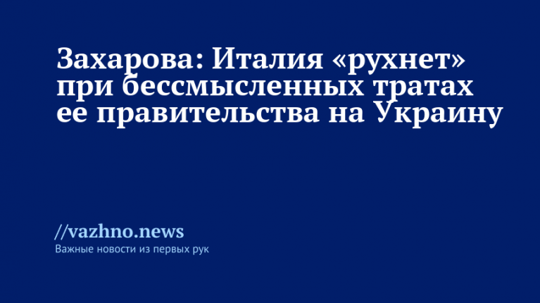 «Пока итальянское правительство будет бессмысленно тратить деньги своих налогоплательщиков, Италия рухнет вся: от экономики до башен», — написала Захарова в своем Telegram-канале.