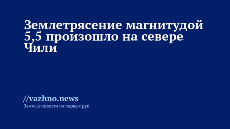 У берегов северной части Чили зарегистрировали землетрясение магнитудой 5,5. Сообщение об этом 3 ноября опубликовали на официальном сайте Европейско-средиземноморского сейсмологического центра.