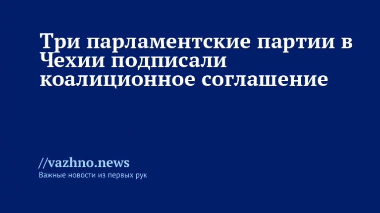 В Чехии партии ANO («Акция недовольных граждан»), SPD («Свобода и прямая демократия») и Motoriste («Объединенные автомобилисты») заключили соглашение о формировании правительственной коалиции. Об этом 3 ноября сообщает издание Seznam Zpravy.