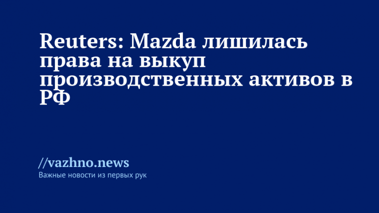 «Японская компания Mazda Motor лишилась права выкупа своей 50% доли в совместном предприятии по производству автомобилей в России, не воспользовавшись опционом на выкуп», — говорится в материале.