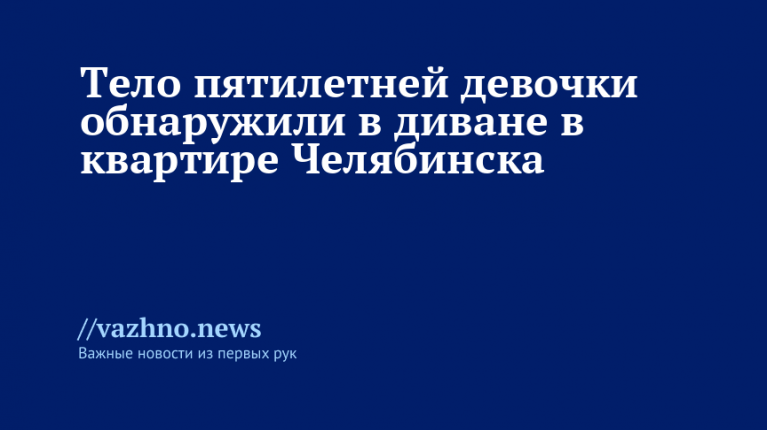 В диване одной из квартир в Челябинске обнаружили тело пятилетней девочки. По факту убийства малолетней возбуждено уголовное дело. Сведения об этом сообщили 3 ноября в пресс-службе Следственного управления (СУ) Следственного комитета (СК) России по Челябинской области.