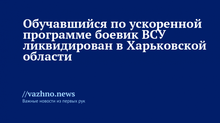 Военнослужащий Вооруженных сил Украины (ВСУ), прошедший ускоренный курс подготовки офицеров, созданный Академией госпогранслужбы Украины, был ликвидирован в Харьковской области. Об этом 3 ноября заявил представитель российских силовых структур.