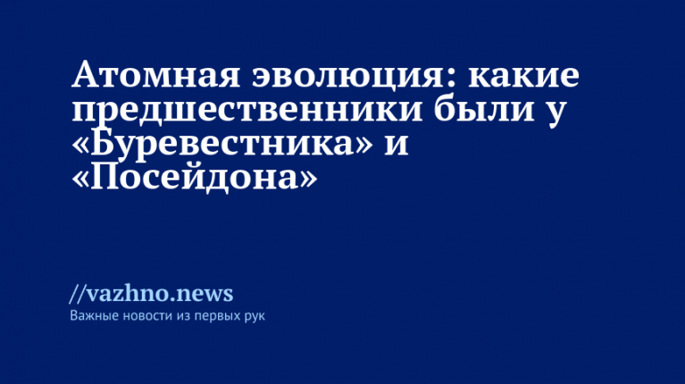 У подводного беспилотника «Посейдон» тоже есть предшественник. Его назначение — приблизиться к берегам противника и взорвать мощный мегатонный термоядерный заряд. Аналогичная задача стояла в начале 1950-х перед главным вооружением первой советской атомной подлодки проекта 627 — термоядерной торпедой Т-15. В 1952 году приступили к работе над торпедой диаметром свыше 1,5 м, рассчитанной на размещение первого термоядерного заряда РДС-6с. По задумке конструкторов, подводная лодка с одной такой торпедой могла подойти на дистанцию прямого выстрела к крупной базе или городу и запустить заряд мощностью 1–1,5 мегатонны. Предэскиз атомной подлодки подготовили в начале 1954 года, но флот встретил новое оружие критически. Главком ВМФ адмирал Н. Кузнецов в конце того года указывал, что по требуемым глубинам для применения Т-15 подходят лишь две базы из 80. К тому же обычные торпеды с ядерными зарядами наносили бы более существенный урон, чем одна гигантская термоядерная. После применения такой торпеды подлодка оставалась бы бесполезной и безоружной. Проект Т-15 закрыли. Позже, в 1961 году, академик Сахаров предлагал возродить идею Т-15 как способ доставки 100-мегатонного заряда к берегам Америки, но военные отвергли развертывание столь мощного оружия.