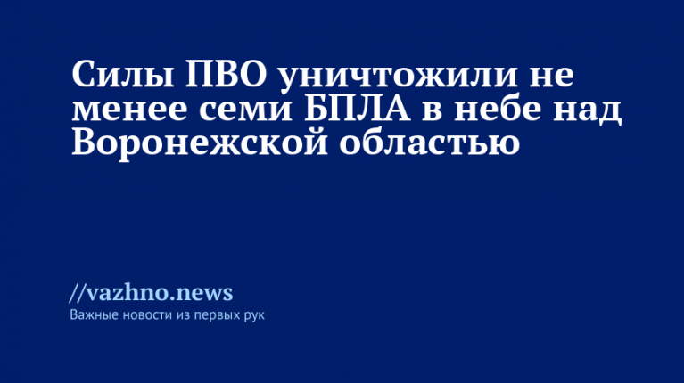 «Дежурными силами ПВО в небе над двумя районами и двумя городами Воронежской области обнаружено и уничтожено уже не менее семи беспилотных летательных аппаратов», — говорится в его сообщении в Telegram-канале.