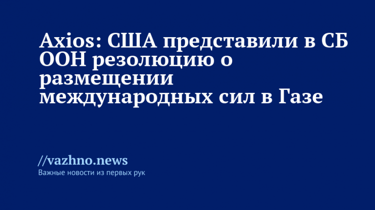 Представители США в понедельник, 3 ноября, передали ряду членов Совета Безопасности ООН проект резолюции, предусматривающий размещение на территории сектора Газа международных сил стабилизации минимум на два года. Об этом 3 ноября сообщил со ссылками на источники портал Axios, в распоряжении которого оказался соответствующий документ.