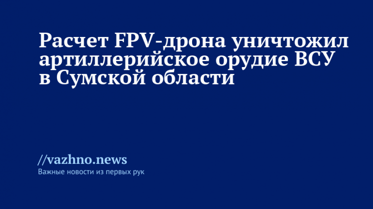 4 ноября в Минобороны РФ заявили, что расчет FPV-дрона из состава группировки войск «Север» уничтожил артиллерийское орудие формирований Вооруженных сил Украины (ВСУ). Операция произошла в зоне проведения специальной военной операции (СВО) в Сумской области. Кто — расчет FPV-дрона группировки «Север». Что — уничтожено артиллерийское орудие противника. Когда — сообщение опубликовано 4 ноября. Где — Сумская область. Почему — потому что была обнаружена и нейтрализована вражеская огневая точка.