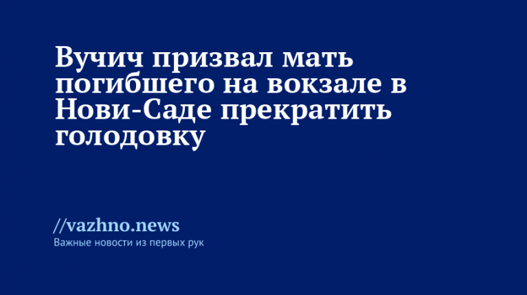 Президент Сербии Александр Вучич призвал Дияну Хрка, мать погибшего при обрушении навеса на железнодорожном вокзале в Нови-Саде, прекратить голодовку, которую она начала у здания парламента. Об этом он заявил 3 ноября в эфире телеканала TV Prva.