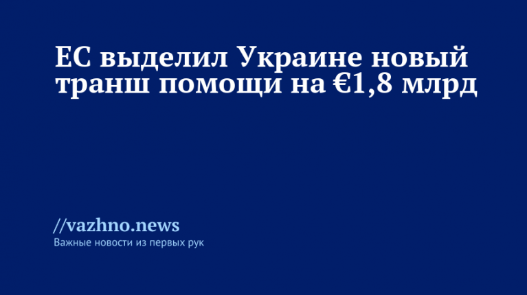 Евросоюз (ЕС) предоставил Украине очередной транш финансовой поддержки в сумме €1,8 млрд в рамках механизма Ukraine Facility. Об этом 4 ноября сообщила пресс-служба Совета ЕС на своем сайте.