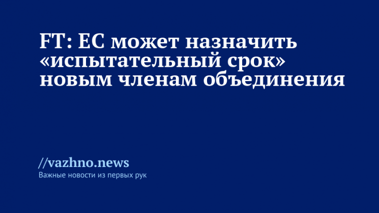 Европейский союз (ЕС) может ввести «испытательный срок» для новых членов, чтобы впоследствии они не превратились в страну, действующую вразрез с общей политикой объединения. Об этом 4 ноября сообщает британская газета Financial Times (FT) со ссылкой на еврокомиссара по вопросам расширения Марту Кос.