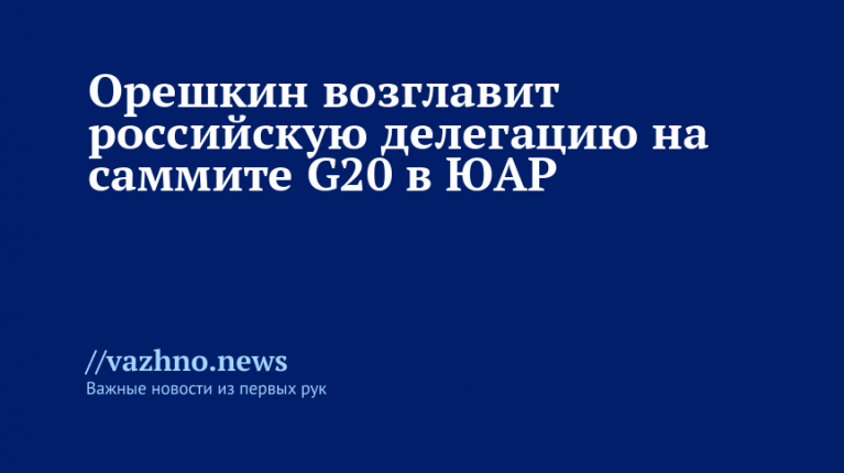 Максим Орешкин, замруководителя администрации президента (АП) РФ, будет возглавлять российскую делегацию на саммите стран G20, который пройдет в Йоханнесбурге (ЮАР) с 20 по 24 ноября. Сведения об этом содержатся в распоряжении главы государства Владимира Путина, опубликованном 4 ноября на официальном портале правовой информации.