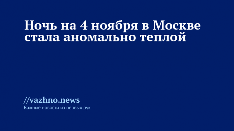 Тишковец указал, что такая теплая ночь 4 ноября на ВДНХ не регистрировалась за всю историю метеонаблюдений: новый уровень побил прежний рекорд 2020 года, когда столбик термометра показывал +7,8 градуса, сообщает агентство городских новостей «Москва».