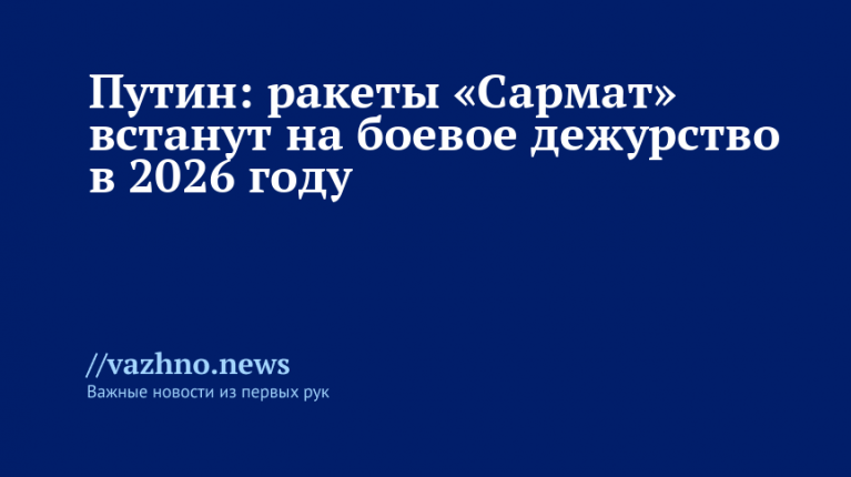 «В текущем году поставим на опытно-боевое, в следующем — уже на боевое дежурство системы с тяжелой межконтинентальной ракетой «Сармат», — завил президент России.