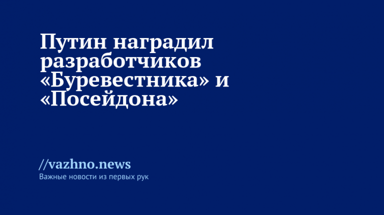 Благодарность разработчикам новейших вооружений РФВ День народного единства — одного из ключевых государственных праздников — у президента была насыщенная программа. Одним из центральных событий стало торжественное вручение в Кремле государственных наград создателям крылатой ракеты «Буревестник» и беспилотного подводного аппарата «Посейдон» — новейших образцов российского вооружения, которыми последние две недели интересуется весь мир.