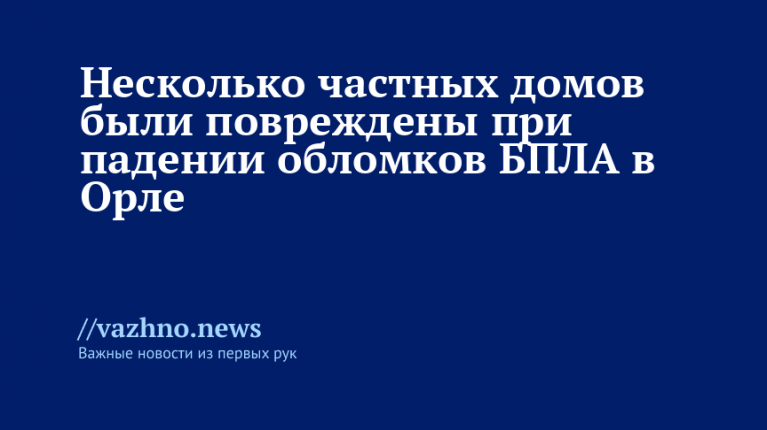 «В результате работы сил ПВО над Орлом уничтожены БПЛА противника. При падении отдельных элементов повреждены несколько частных домов и хозпостройка», — говорится в его сообщении в Telegram-канале.