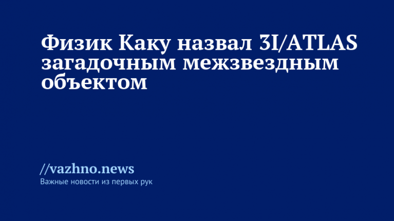 Американский физик и популяризатор науки Митио Каку прокомментировал объект 3I/ATLAS в интервью одному из телеканалов; этот объект в классификации NASA фигурирует как межзвездная комета. Фрагмент его интервью, записанный для телеканала Newsmax, был обнародован и получил огласку в медиа.