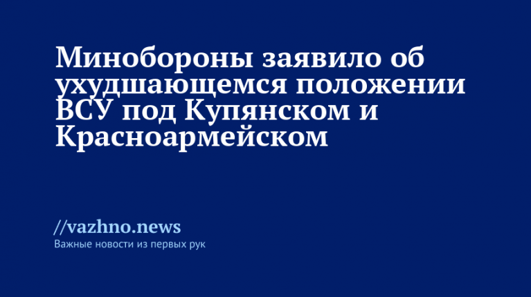 Минобороны: положение ВСУ ухудшается под Купянском и Красноармейском