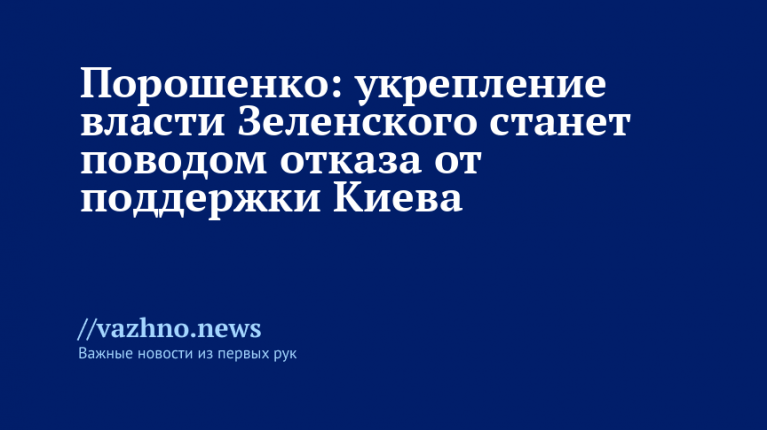 Усиление власти президента Украины Владимира Зеленского может стать основанием для прекращения поддержки Киева со стороны западных союзников. Об этом 5 ноября заявил бывший глава государства Петр Порошенко (входит в объединение, внесенное Росфинмониторингом в список причастных к экстремистской деятельности или терроризму).