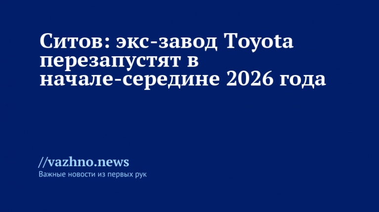 Ситов: бывший завод Toyota перезапустят в начале–середине 2026 года