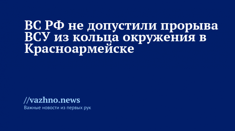 Минобороны РФ 5 ноября сообщило, что подразделения группировки войск «Центр» не позволили Вооруженным силам Украины (ВСУ) вырваться из кольца окружения в Красноармейске Донецкой Народной Республики (ДНР).