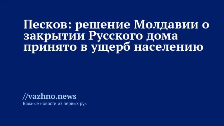 Песков: закрытие Русского дома в Молдавии нанесёт ущерб населению